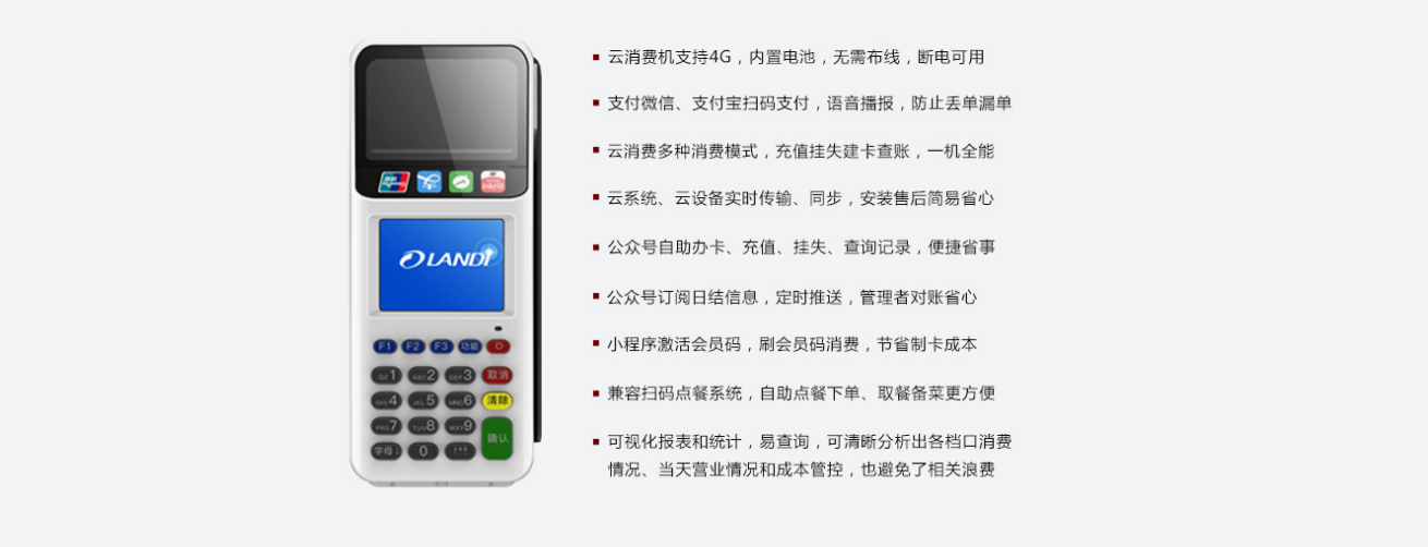 一款集扫码、刷卡支付于一体的无线POS终端 食堂专用产品支持补贴累计清零模式,消费补贴充值一体,支持消费外接小票打印功能
